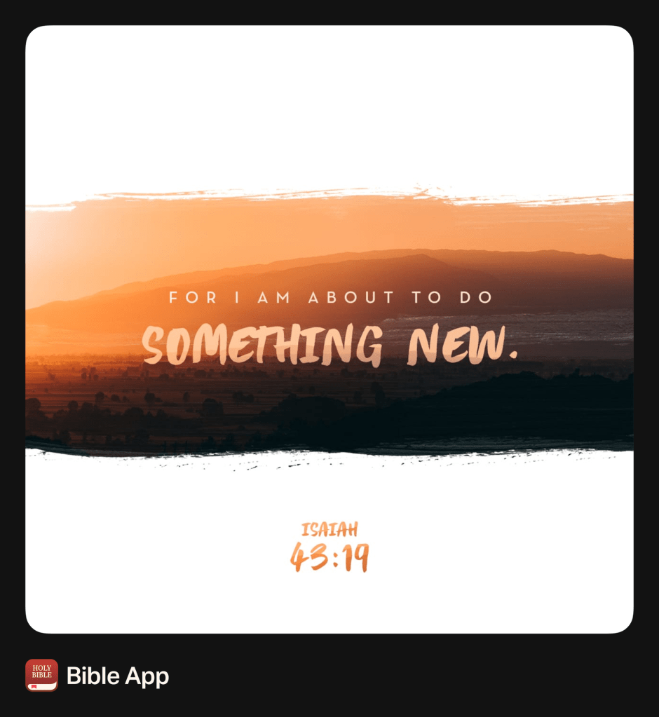 “Forget the former things; do not dwell on the past. See, I am doing a new thing! Now it springs up; do you not perceive it? I am making a way in the wilderness and streams in the wasteland.”